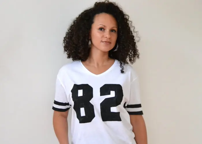 Sportliche T-Shirts mit Blockstreifen an den Ärmeln sieht man zurzeit überall. In diesem DIY zeige ich dir, wie du ein cooles Oberteil mit deinen eigenen Lieblingszahlen selbst machen kannst.