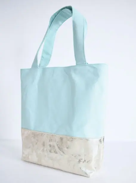 Für Shopper „Elsa“ eigenen sich zB feste Baumwollstoffe, Canvas oder Jeans. Als Innenstoff reicht ein normaler Baumwollstoff. Für den Boden eignet sich vom Look her und von der verstärkenden Wirkung am besten Kunstleder.