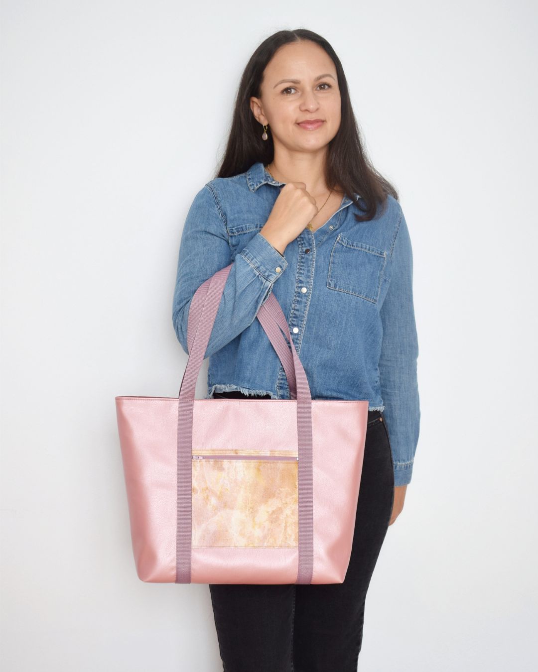 Zum Schnittmuster gehört eine Video-Anleitung, dort zeige ich dir Schritt für Schritt, wie Shopper „Lidiya“ genäht wird.