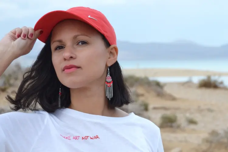 Rote Baseball Cap von Nike, Ohrringe von Terra Fuerteventura, Lippenstift Rouge Allure 136 Melodieuse von Chanel.